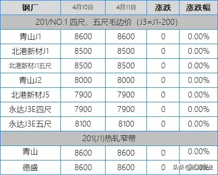 今日,青山代理報(bào)價(jià)4-5月期貨,鼎信304冷軋窄帶13200元/噸,30478冷軋窄帶12700元/噸,304熱軋大板13230元/噸。