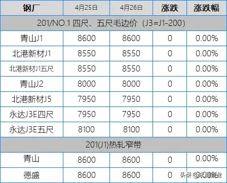 午后,304吆喝轉(zhuǎn)弱后,201開始跟隨各種搞氛圍,多是高位報價下調(diào)20-30限量接單,而不久就接滿回歸調(diào)回高位,各個都在限量,各種好似都成交很好,但是實際接了多少可能只有自己知道。今日現(xiàn)貨市場含稅價格:J1: 宏旺、北港、誠德8850-9000基;J2、J5: 8250-8400基。