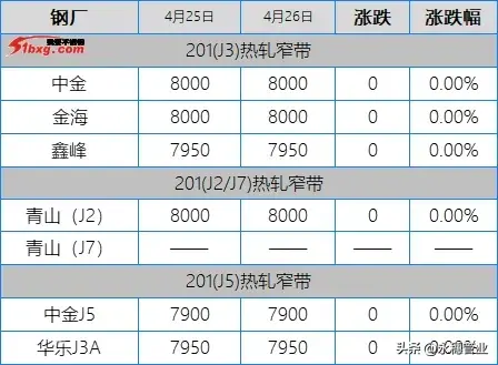 今日,青山代理持平報4-5月期貨,鼎信304冷軋窄帶13600元/噸,30478冷軋窄帶13100元/噸,304熱軋大板13630元/噸,30478熱軋大板13100元/噸。
