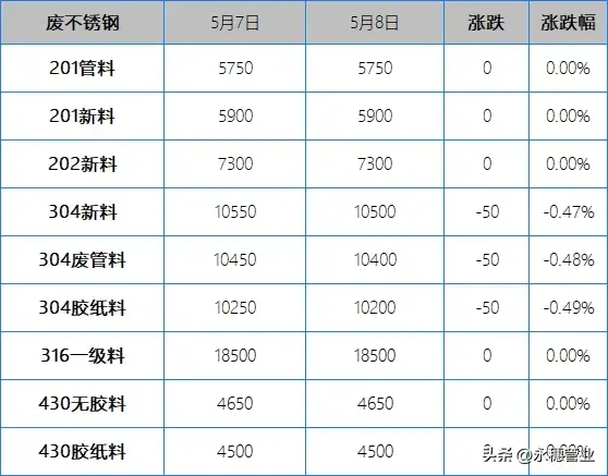今日,市場跌價氛圍漸現(xiàn),跌價多是體現(xiàn)在304廢料上,跌幅多在20-50元/噸,下游詢價積極性較昨日有所下降,后期因受到不銹鋼期貨盤面泛綠運行的影響,出于成本及利潤等方面的考慮,商戶壓價收貨心態(tài)濃厚,可成交現(xiàn)象表現(xiàn)有限。