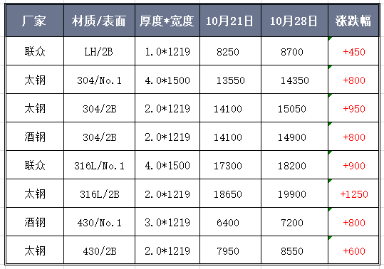 然而,封盤是為了繼續(xù)造勢,拉漲則是為了更好地刺激市場。本周,201冷熱軋價格齊頭并進。周初,熱軋已有沖破8000元/噸的勢頭,至周三誠德開盤大漲500元/噸,華樂合金11月指導(dǎo)價開盤大漲600元/噸后,眼看今天誠德又全線封盤了,漲價更是底氣十足。