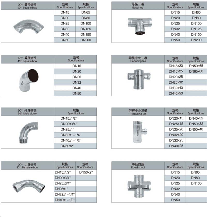 承插焊不銹鋼管件,衛(wèi)生級(jí)管件,主要適用于石油化工、醫(yī)藥衛(wèi)生、電力、航天、軍工、消防、冶金、造船、燃?xì)狻⒑穗?、及環(huán)境保護(hù)等要求承受壓力高、尺寸精密等部門及領(lǐng)域。